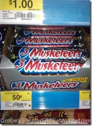 3 Musketeers bars are just $.50 a piece. Use the $.50/2 coupon from RP 6/26 to make them just $.25 each!