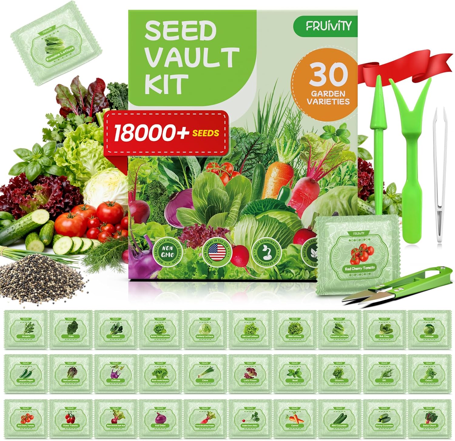 - 30 individually labeled heirloom seed varieties