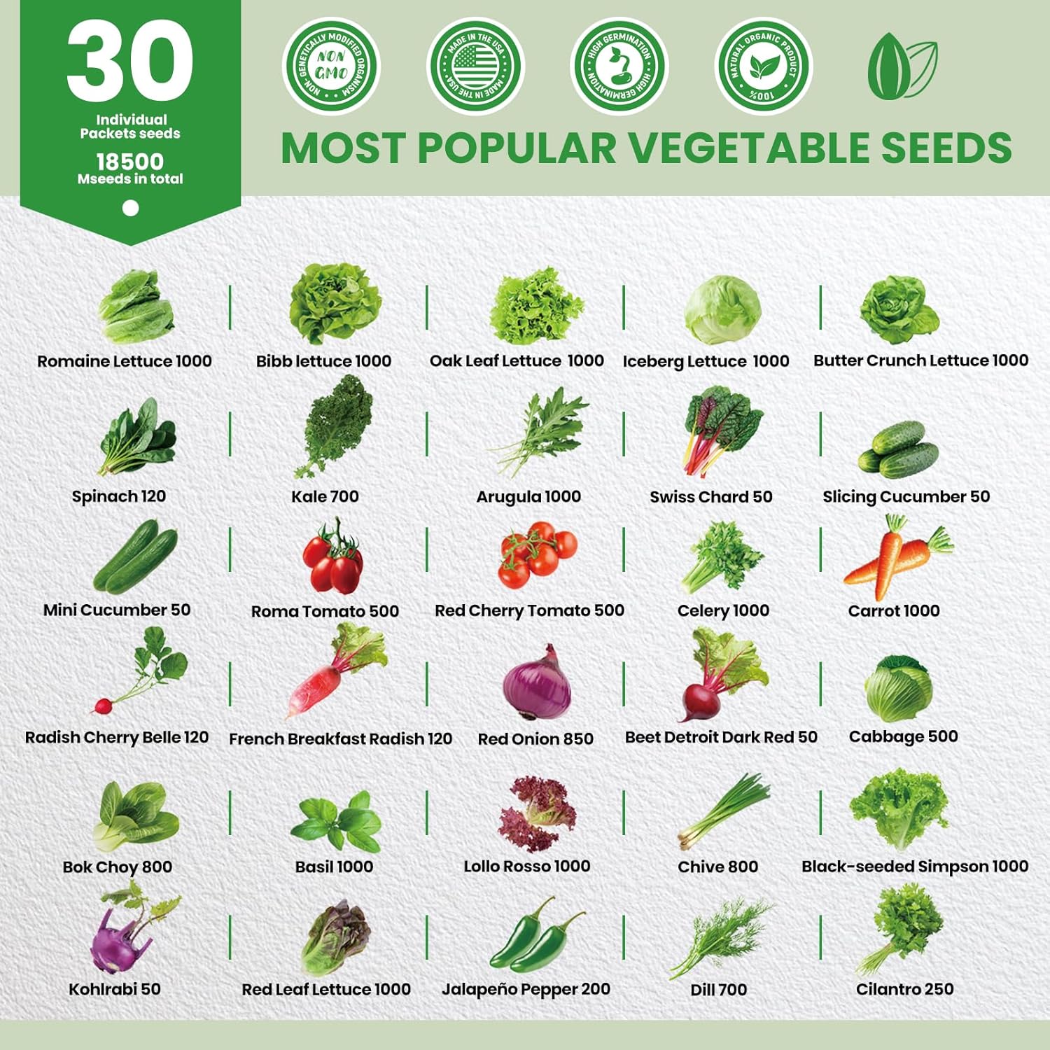 This is an awesome deal for over 18,500+ seeds. It’s perfect for hydroponics, raised beds, containers, backyard gardens, or gifting to anyone who loves growing fresh produce.