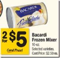 Use the $2.00/2 printable coupon for Bacardi Mixers