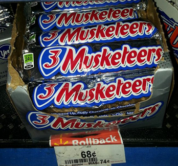 Dove and 3 Musketeers Candy Bars – 59¢ – (ad match to Walgreens)