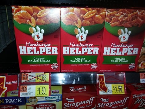 Hamburger Helper is $1.50 and Hamburger meat is up to $6.44 at Walmart