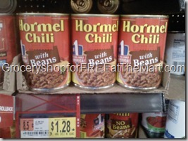Hormel Chili is $1.28 a can