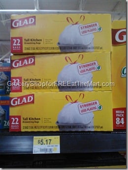 Use the $1.85/1 printable coupon for Glad Kitchen Trash bags. (Watch a short video to get an extra $.50)