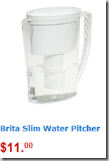 There will be a $4.00/1 coupon for Brita pitchers in this weekend’s 1/15 coupon inserts. Use it on the Brita Slim Water Pitcher and get it for $7.00.