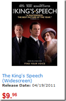 Use the $3.00/1 printable coupon for The King’s Speech on DVD or Blu-Ray