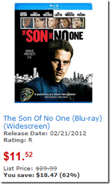 Use the $3.00/1 printable coupon for Son of No One on DVD or Blu-Ray
