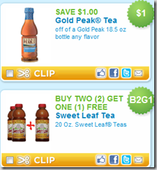 There is a B2G1 :fr: coupon for the 20oz Sweet Leaf Tea.
