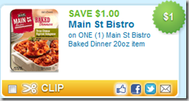 $1.00 off any Main St Bistro Baked Dinner