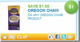 There’s a great $1.00/1 printable coupon for Oregon Chai available here. you can find these for $2.88 or $1.88 after the coupon so it’s a very good coupon. Look under “Beverages” and zipcode 76013.