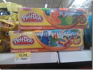 I headed out today to grab my :fr: Play-Doh with this coupon expecting to pay about $6.00 for all 3 packages when I was pleasantly surprised with a price drop. Instead of $2.97 (which is what they were a Christmas) they are just $2.24 each now! All together I got 3 4pks for just $4.48, ($1.49 each!) meaning I got… Continue Reading