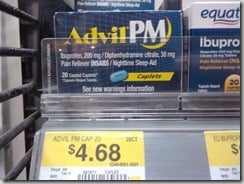Advil PM 20 ct boxes are on sale for 4.68. Use the 4.00/2 coupon found in SS 5/22 to make it 2.68 per box. Pick up two boxes to complete the deal. Continue Reading
