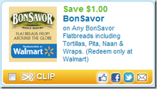 I have never seen BonSavor flatbreads but I’m forever looking for deals on low-carb breads for Dian so I’m glad to see such a good coupon. Look under zipcode 79999 and foods to find a $1.00/1 printable coupon for BonSavor products.