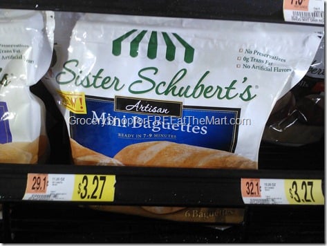 Use the $.75/1 printable coupon for Sister Schubert’s Mini Baguettes or Soft Pretzel Rolls