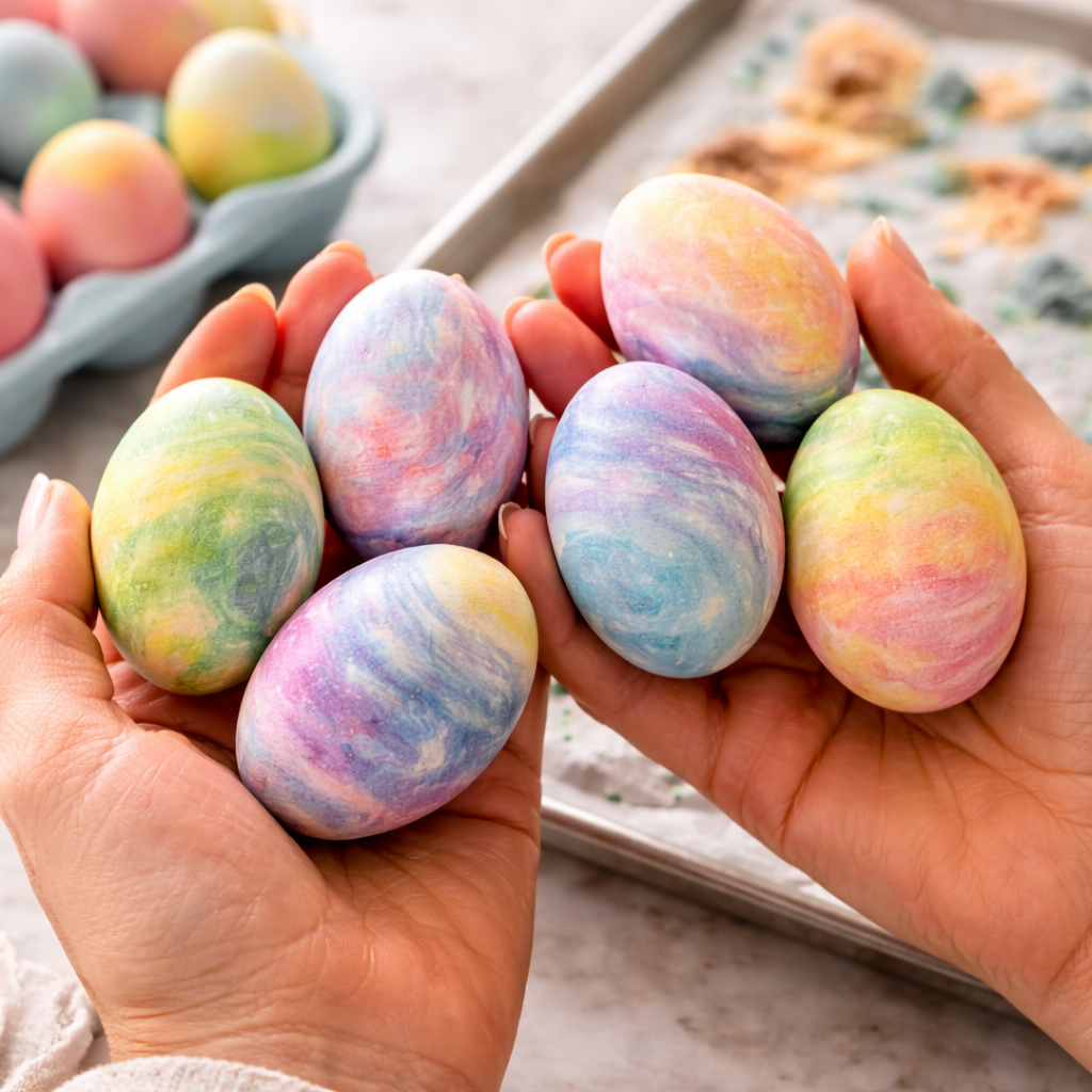 Do you remember dyeing Easter eggs with shaving cream? Do you also remember how your eggs tasted like the shaving cream? No?