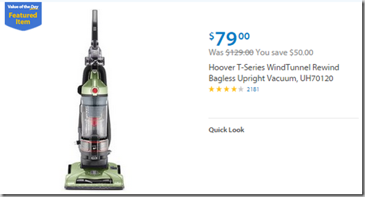 Here is today’s Walmart Value of the Day! You can get a Hoover T-Series WindTunnel Rewind Bagless Upright Vacuum, UH70120 for $79!