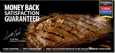 I was watching American Idol and saw a brand new commercial touting Walmart Steak. The interesting part about the commercial was that Walmart wants you to try their steak so bad they just started a new Money Back Guarantee on their steaks!